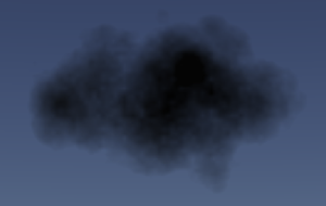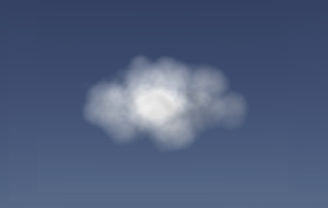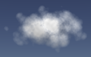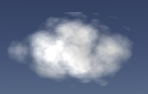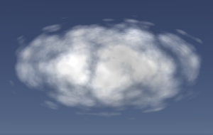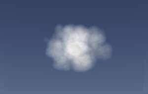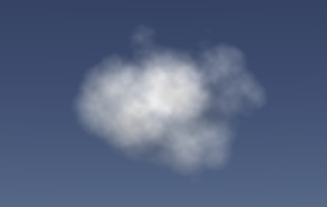 A cumulus cloud billboard positioned in the 3D scene, that is created and rendered using a CloudCollection.